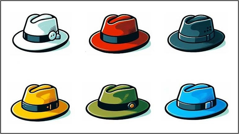 Think of vegetation and rich growth. The green hat is specifically concerned with new ideas and new ways of looking at things.