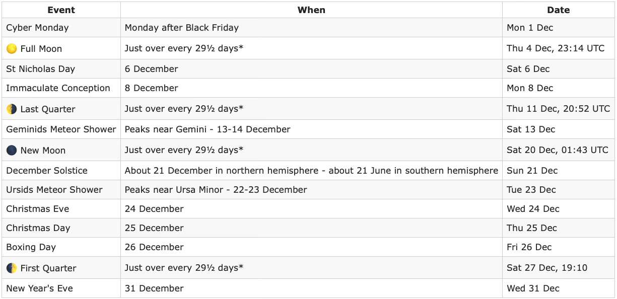 Please leave a comment if you think of other events that should be included in the December almanac.