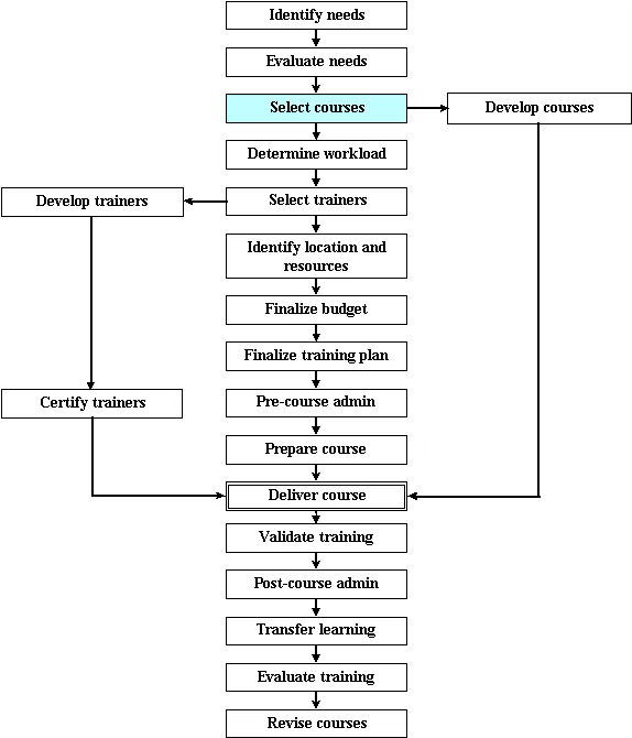 Having established that training is appropriate for the identified development needs, the next step is to find courses that meet those needs. We have to make choices about whether we buy or develop our courses. Developing a course from scratch can be both expensive and time-consuming. Even purchasing a course that exactly matches all the requirements is not as easy as it sounds.