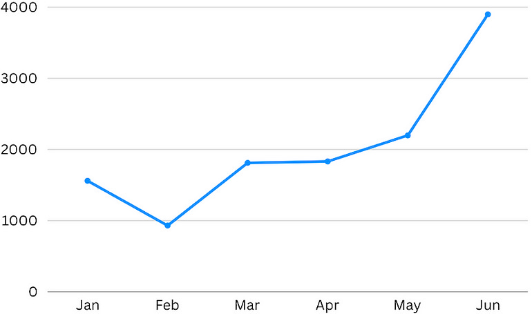 Time Charts display changes in a particular event over a given period. They can help summarise occurrences of a situation and depict a (casual) relationship between two quantities. Time is usually shown on the horizontal axis.