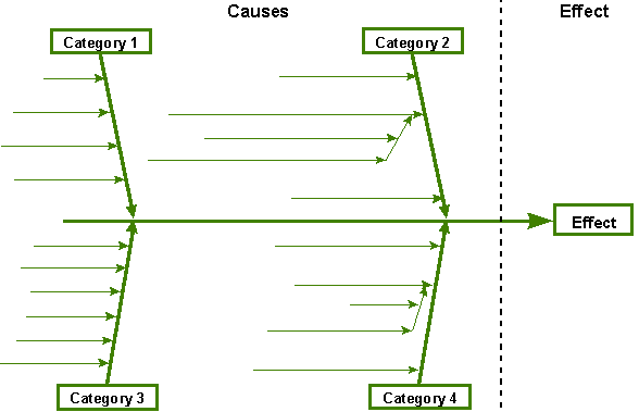 The problem statement (the ‘Effect’) is entered in a box at one end of the ‘backbone’.